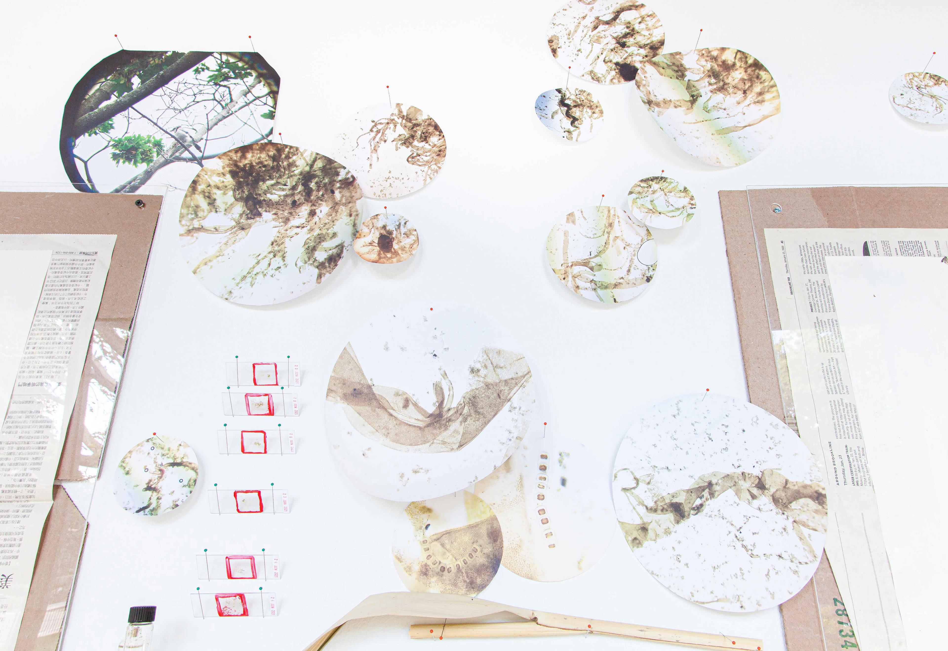 This work grows around three main plant specimens found in the surrounding environment of the installation site. Asian Knotweed, a highly invasive plant coming from the eastern world; American Burnweed, native to the U.S. but is considered invasive to places in Asia; and Sugar Maple, visible through the windows in front of the gallery space and is a well-known representative of this northeastern U.S. region. Thinking about the ideas of home, migration, and interconnectedness, these specimens display impressive abilities to adapt and thrive; against the controversial debates of their invasive existence, reflecting through my own migration history.